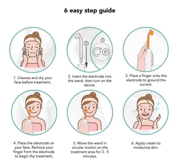 The High-Frequency Therapy Device works by delivering a gentle electrical current that generates ozone, which eliminates acne-causing bacteria,